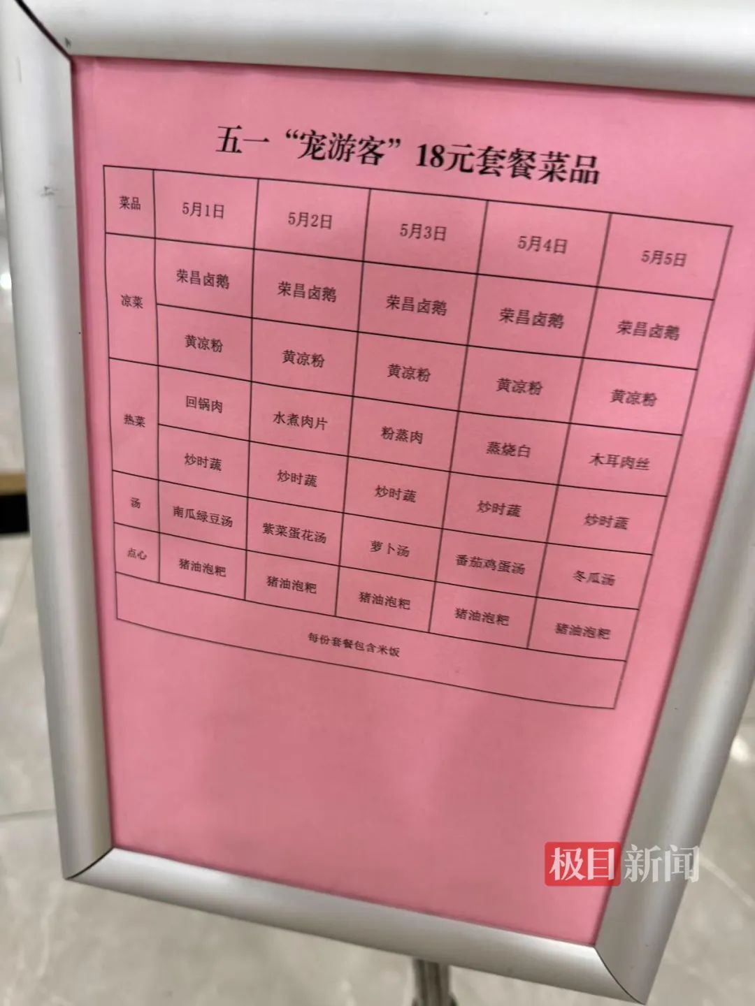 荣昌区机关事务解决中心副主任兰洪梅先容,政府食堂责任主说念主员总额是50多东说念主,但5月1日今日从学校和几家货仓借调了50余名厨师,还配备了或者70名志愿者为旅客提供就业。兰洪梅说,政府食堂为旅客提供了两种就餐聘用,一种是18元套餐,包括2荤2素1份点心,包括荣昌卤鹅和猪油泡耙;第二种是小碗菜,价钱有3元、5元、8元和10元几种,包括猪油泡耙、羊肉汤、荣昌卤鹅和荣昌回锅肉等。
