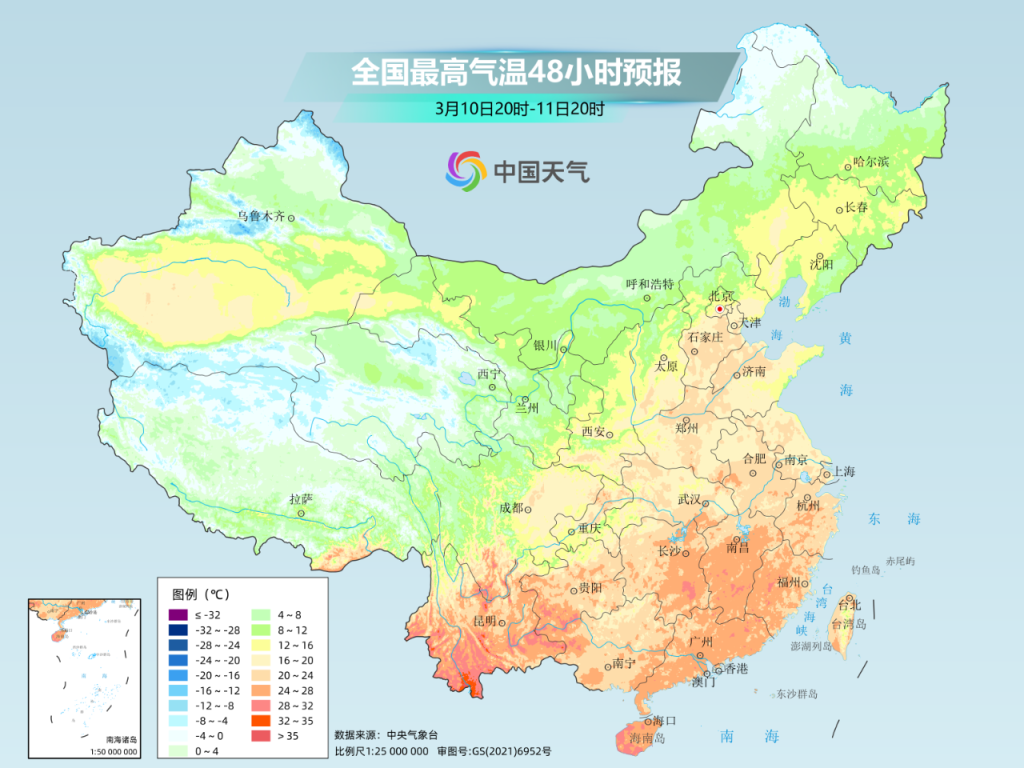 南边也将开启升温模式,并在11日至12日达到气温高点,西南地区东部到江南等地最高气温将升至20℃以上,最高气温20℃线将向北鼓动到河北南部,回暖之强势,可见一斑。