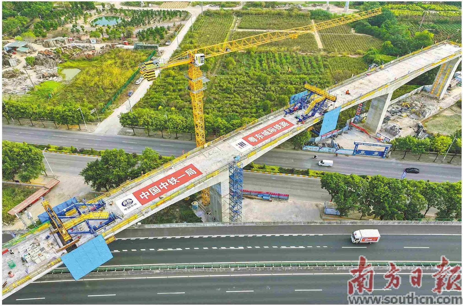 粤东城际铁路首座上跨高速公路特大桥合龙现场。林楚楚 摄